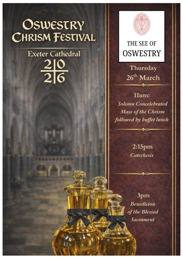 26th – Oswestry Chrism Mass, Exeter Cathedral, 11am – 3pm